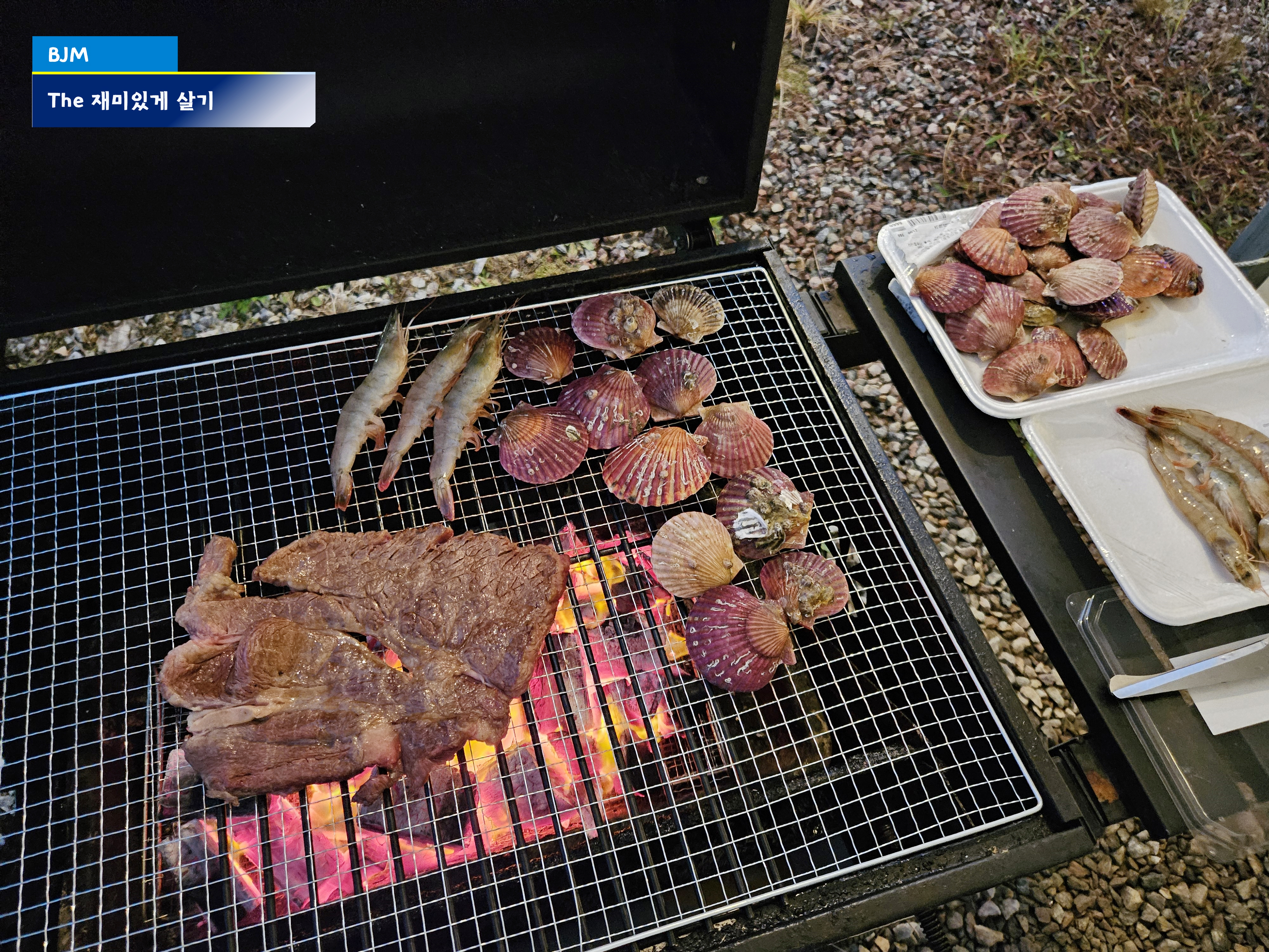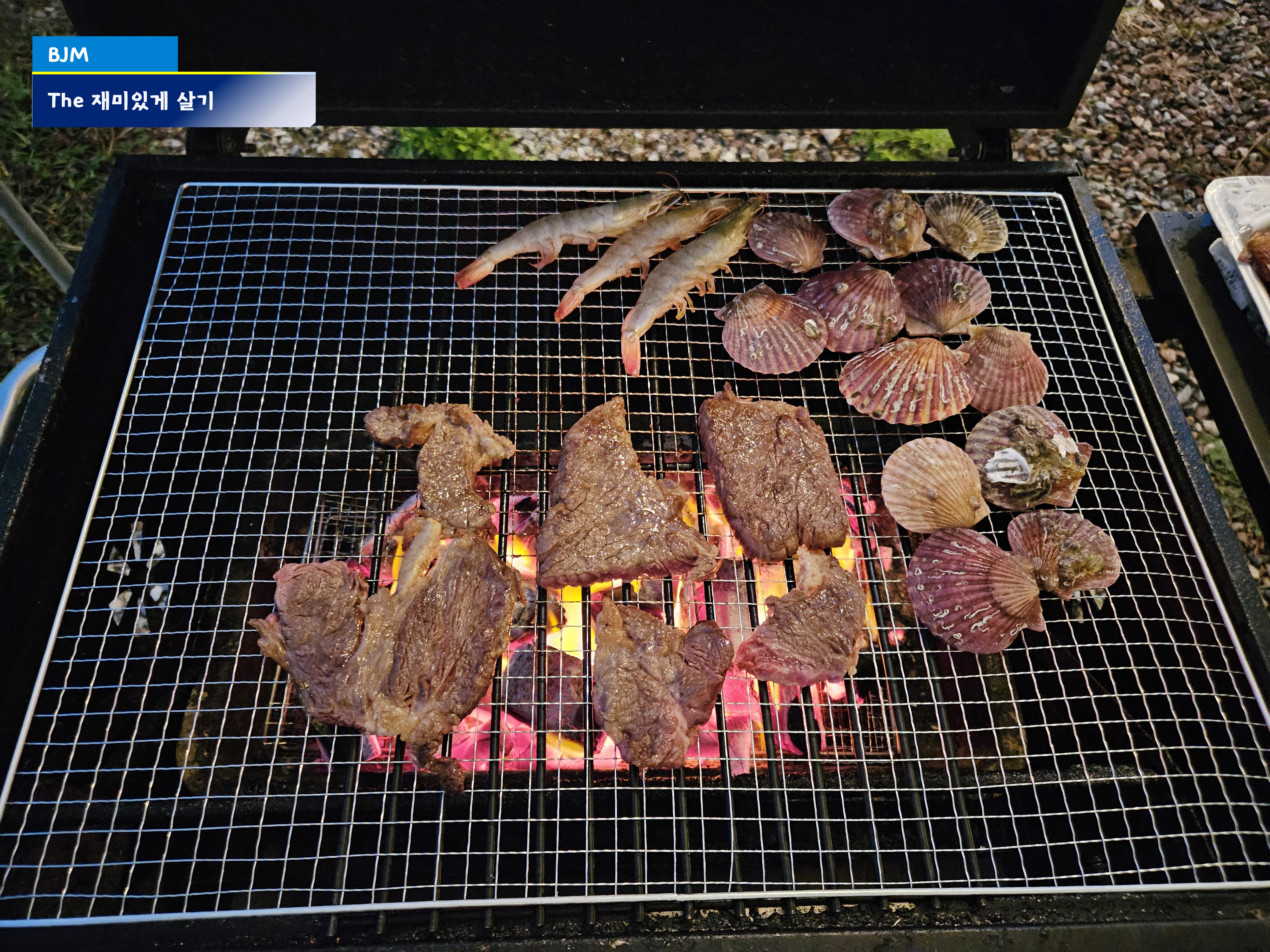 날씨가 선선한 가을이니, 야외에서 고기와 조개구이를 해먹기로 했다
