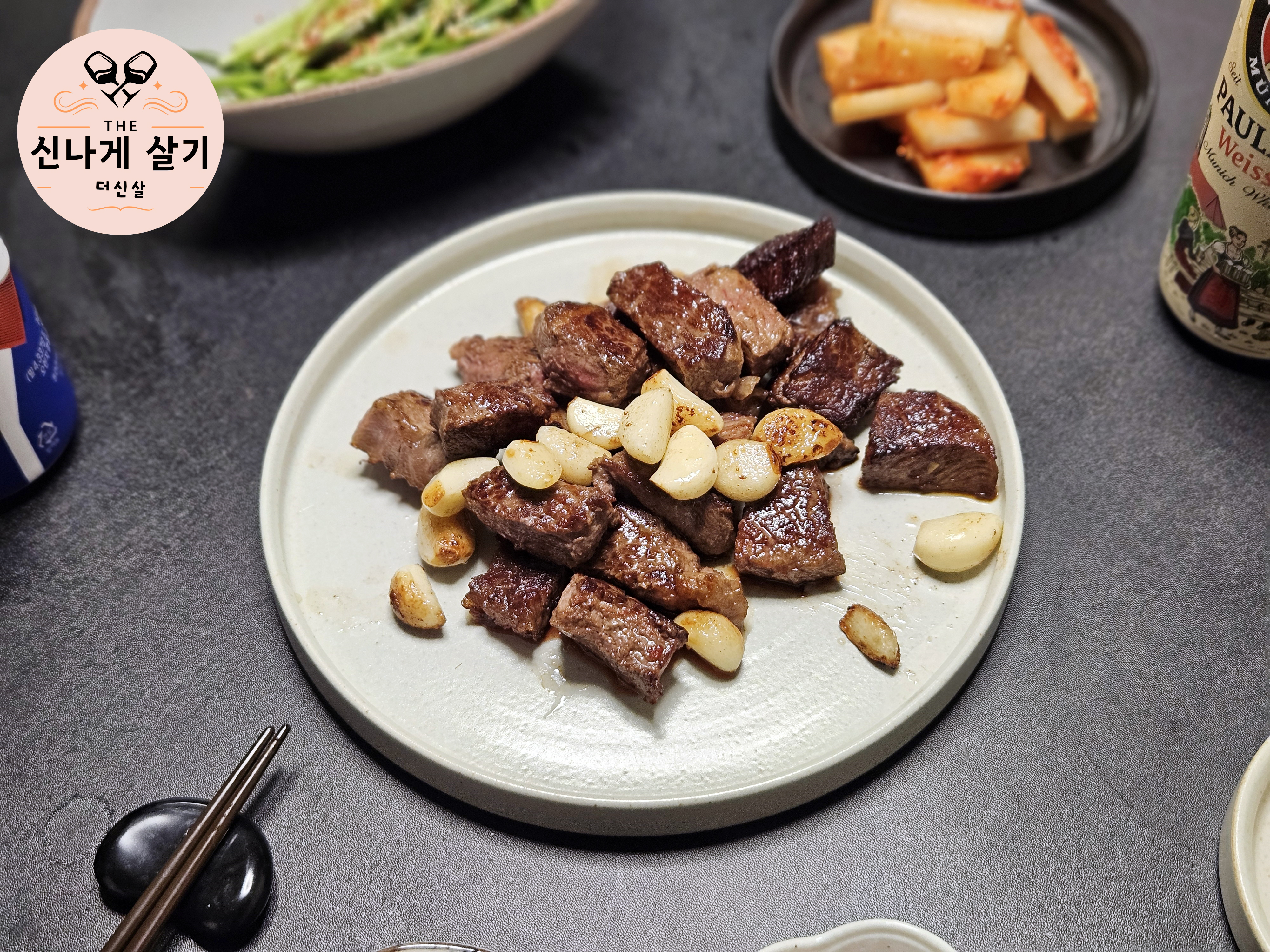 고기와 마늘 등을 함께 구웠는데 이러한 육류와 굉장히 잘 어울렸다.